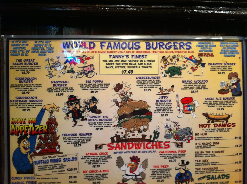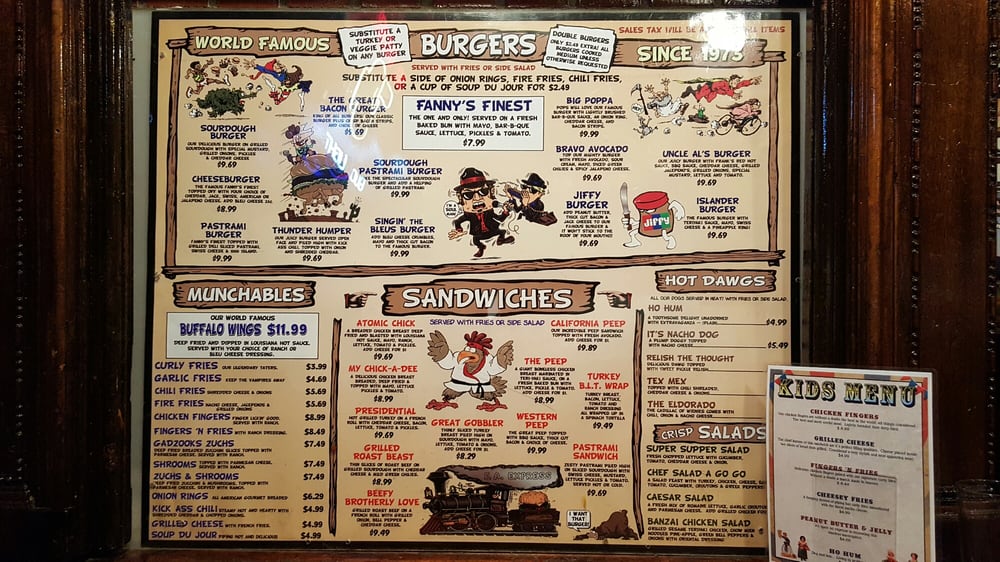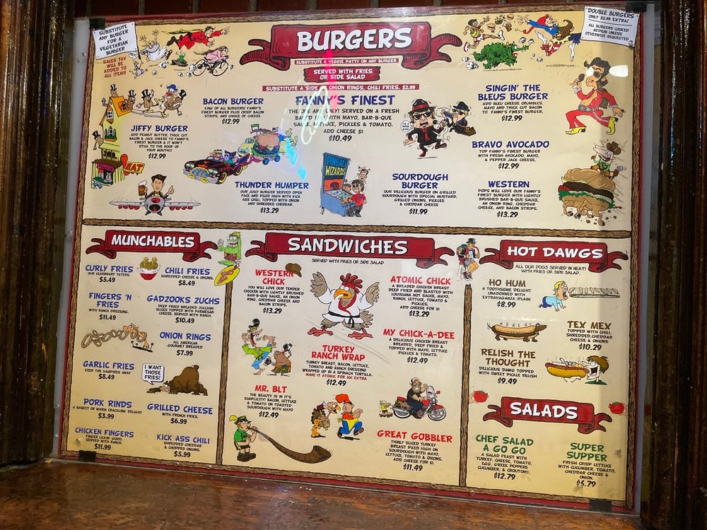 Pops will love our fannys finest burger with lightly brushed barbque sauce, an onion ring, cheddar cheese, and bacon strips